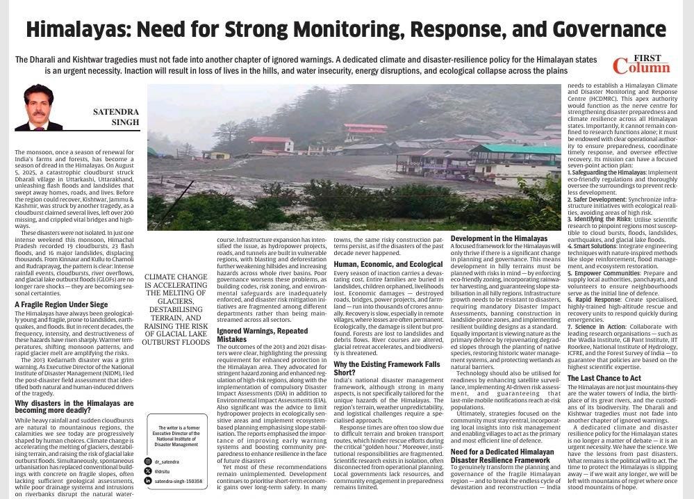 Himalayas: Need for Strong Monitoring, Response, and Governance